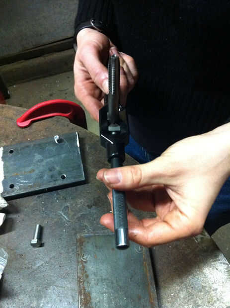 Su metal sólidamente a algo que no se mueve, o lo contrario sujetar la abrazadera. Ejecute una ligera capa de aceite sobre los bordes de los tornillos de la llave. Usted está listo para ir.