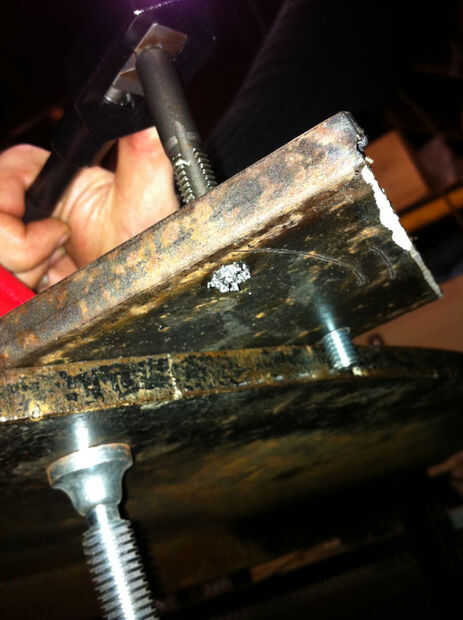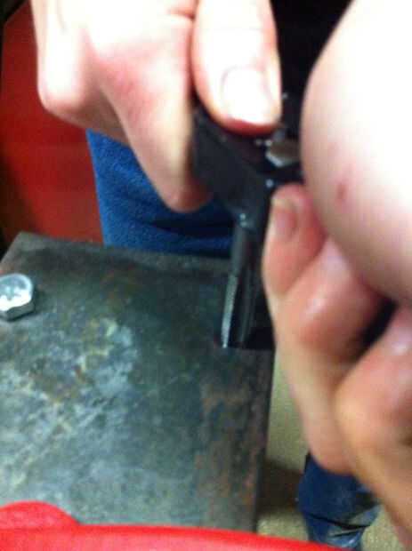 Seguir haciendo esto hasta que el grifo es a través de todo el camino y gira libremente. La parte inferior 1/4" o del grifo, llamado el chaflán debe ser enteramente sobresale. Simplemente desenroscar el grifo del agujero otra vez. No olvides limpiar las virutas de metal y petróleo.