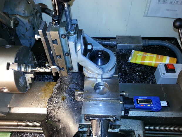 La configuración que he utilizado puede verse en las fotografías. Usé mi slide verticales de fresa con un par de bares (sostenidos por los pernos de M6 atornillados en Tuercas correderas en ranura tee roscada) de sujeción.