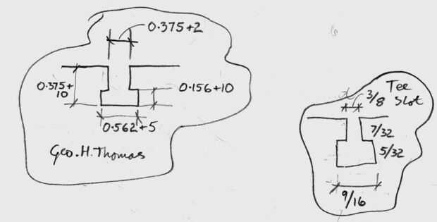 Hice algunas mediciones ásperos de las ranuras que mostraron que la mayor parte de las ranuras fueron alrededor de 14,2 mm de ancho. El diámetro 20 m m de los cabezales de perno tuvo que ser reducido a esta anchura para que podrían encajar en la ranura.