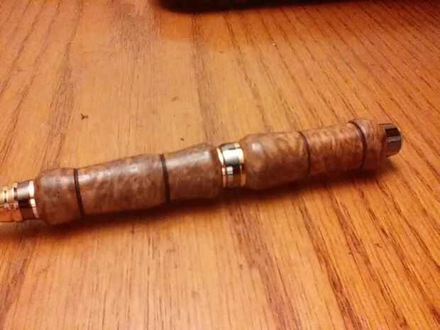 estos son los pasos que usa para conectar un lápiz de madera que "He hecho en TechShop". Recibí el kit de pluma de un surtidor exterior y creo que el TechShop debería tener esto como una clase de hacer-lo. La madera era algún desecho cereza que