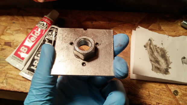 Soldar la tuerca en la parte inferior de la arandela cuadrada.