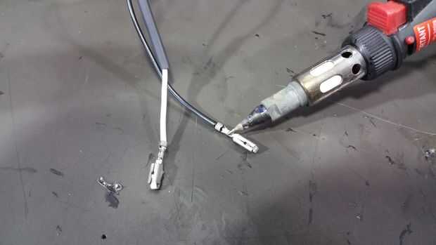 Comience ejecutando los dos cables hacia el motor. Medir, cortar y tira de los cables para la gestión de alambre limpio. Soldar terminales en el extremo de los cables y conéctelos a los terminales del motor.