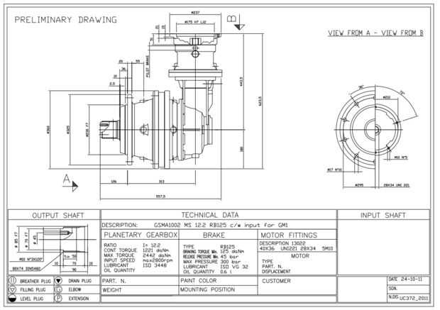Es esencial que comprar artículos tales como motores y cajas de engranajes se modelan con precisión para asegurar el marco de acero fabricado se ajusta firmemente. Fabricado acero maquinado a tolerancias apretadas para todos los motores y las cajas de engranajes. Muchas empresas ahora ofrecen modelos en 3D de sus productos, aquí es un enlace; http://www.TraceParts.com/users/TracePartsOnline/index.asp y estos pueden ser colocados en su conjunto 3D. Su defecto, es posible obtener hojas de datos de 3D como se muestra a la modelo su propio. Hojas de datos proporcionan dimensiones tales como diámetros de agujero y la distancia entre caras de montaje. Se muestra aquí es una hoja de datos y mi caja de cambios modelado.