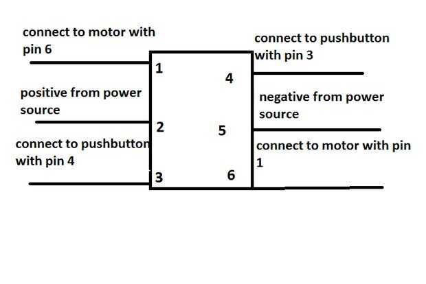 - Ahora agregar el cable a la clavija 3 y la clavija 4 que estos 2 cables van a conectarse a un lado de la tecla y luego tomar el otro lado del botón y alambre negro en el motor
