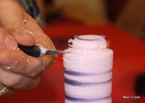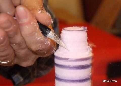 -Corte la porción entera de cabeza a este diámetro externo. Reducir poco a poco. Me gusta cuidadosamente corte la parte superior con el diámetro necesario, luego corté el resto para que coincida con.