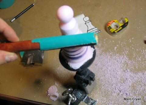 Para el corte de la cintura del Peón - es conveniente una tira de papel de lija a un dowl cinta. Esto hace que una herramienta de buena talla.