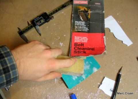 Pero lija obstruye rápidamente - por lo que necesita un papel de lija limpiador! Estas se venden para uso con lijadoras de banda. Es como un borrador gigante pegajoso que por arte de magia limpia papel de lija. Este es un ahorrador de vida si se trabaja madera húmeda, duro o gomoso.