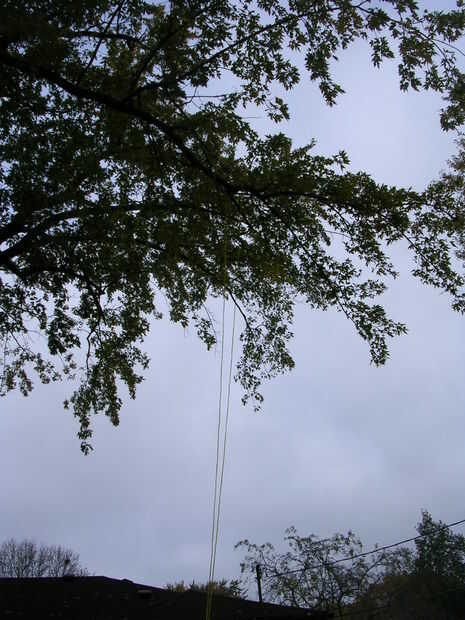 Necesita una cuerda sobre esa rama. Usé una vieja pelota de tenis con un agujero que penetra a través de ella para mi que peso. Ate la cuerda al peso y coloque un montón de cuerda en el suelo (aproximadamente 2 x la altura de la rama por encima del suelo) y asegúrese de que no está enredado o enredarse en nada. Tiro el peso sobre la rama y trabajar la cuerda hacia arriba y hacia abajo para obtener el peso a su alcance. Me llevó muchos intentos. Creo que llegué a los tiempos de la rama 7 u 8. He conseguido un par de veces más, pero no podía llegar a bajar así que tuvo que tirar atrás y empezar de nuevo. Otras veces, yo simplemente lanzó bajo la rama.