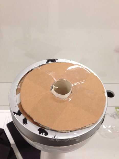 la estación meteorológica se muestra montada en la torre giratoria. Esta fotografía muestra la caja del transmisor inalámbrico con la célula solar y el método de montaje que he usado.  El negro grande invertida forma de cono, es el colector de lluvia
