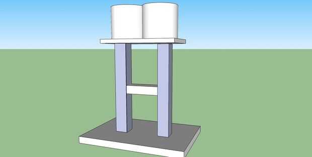 El pie o la base de esta torre es un rectángulo de 6 pies por 9 pies. Se excava en la tierra cerca de dos pies, pero pueden necesitar ser más profundo dependiendo de la consistencia de su suelo. Tiene que ser una base sólida de la roca.