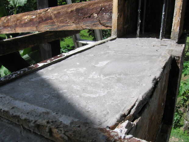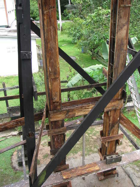 El siguiente paso es verter las columnas de hormigón.  Esto se hace por ningún otro método entonces cubo por cubo.  Este proceso se realiza en dos pasos.  La primera parte era verter las columnas hasta la altura de la pieza transversal y verter la columna cruzada.  Después que habían endurecido la sección superior se abordó apagado y vertida.   Cerca de cuatro sacos de cemento y doce cargas de arena entraron en las dos columnas.   La torre de madera anterior fue utilizada como un andamio para verter el cemento.   Una vez que derramó es bueno deje las columnas para una semana o así que lo dejó seco.