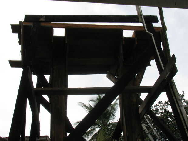 Madera cortada a la forma de la longitud apropiada las columnas cuadradas. La parte superior se deja abierta para que el concreto puede ser vertido. Para el espacio entre las columnas que es la parte inferior de la plataforma, tablones de madera o madera contrachapada debe cortarse al tamaño correcto. Alrededor del borde, debe clavar para que el concreto puede ser vertido madera. Asegúrese de que todo es plano y estrecho con las columnas y la base.