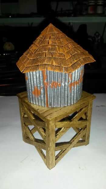 He pintado el depósito de agua y agrega las manchas de óxido a lo largo de las costuras para darle un aspecto envejecido.