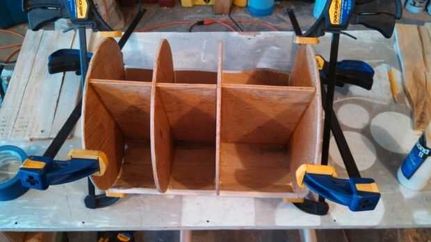 Lados, espero que notado que nos pegar en la parte superior e inferior, que no todo caerá sólo. Para hacer las piezas de lado que encontré paletas que tenía fina (5/8 de pulgada) espesor piezas y corta a la medida (mina son 14 pulgadas de largo). Puse en algunos de los lados y luego pegado en la parte superior e inferior, me da más que una línea recta para unir a. Este proceso tomó mucho tiempo hacerlo, porque cada pieza tiene que ser pegado en por separado. En la foto 3 se puede ver había pegado en la parte superior e inferior y sujeta todo para arriba. Abrazaderas de regular 12 pulgadas no son lo suficiente así que tuve que romper mis pinzas de 24 pulgadas. Entonces simplemente mantener en pegado en las piezas laterales hasta conseguir tantos como quieras (lijar los bordes y hacía curvas sólo para las miradas). Encontré que no corté piezas suficientes y tuvo que ir a buscar el lado más, así en la primera foto ves 6 piezas, en realidad tenía 14. Corté las tiras de la plataforma en medio por lo que son acerca de un 1,25 a 1,5 pulgadas de ancho. Puedes hacer puertas o dejarlo abierto como yo lo hice (foto 4). A continuación hacemos el anillo superior.