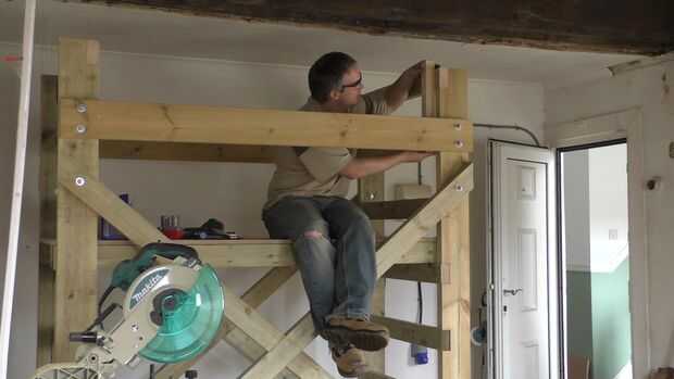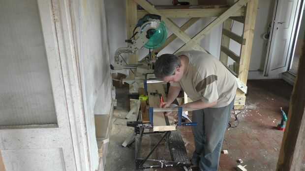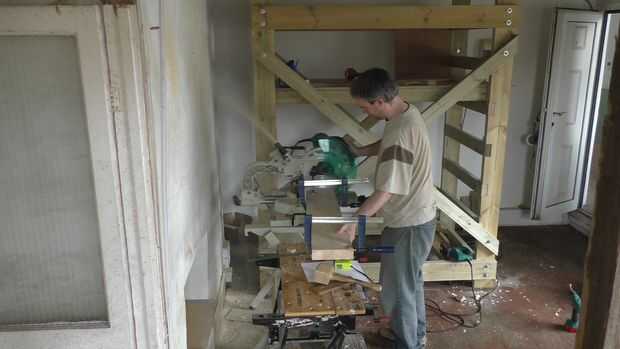 El sistema de carril del protector es muy sencillo. Se compone de cuatro montantes de 50x50mm atornilladas a la parte superior dos peldaños con listones de madera atornillados en la parte superior para evitar que caiga el andamio. Mientras que los carriles del protector no pueden comprende muchas partes que tienen que hacer exactamente porque están diseñadas para ser intercambiables en cada esquina y ajustable verticalmente. Comencé por áspero corte cuatro piezas de stock PAR de 50x50mm y entonces corte a exactamente la misma longitud de la cuadrilla.