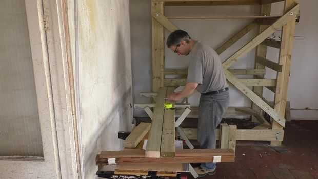 Cortar las cuatro vigas que apoyarán la plataforma a la longitud. Opcionalmente todo Deslice dentro de la torre y lo prueba, esto realmente no es necesario pero no me pude resistir.