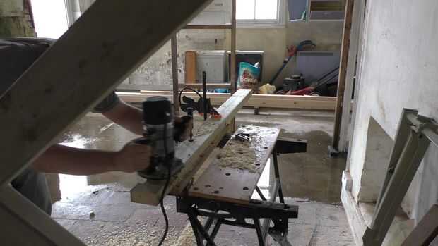 Una vez que los cortes de trincheras fueron completados y definición el mortices limpié el resto de la mortaja con el router.