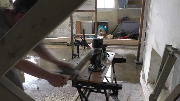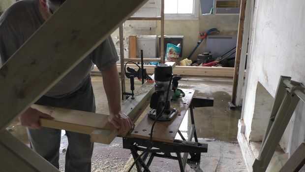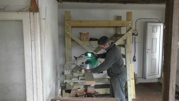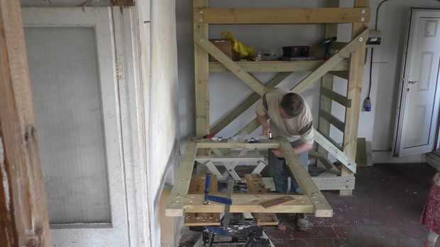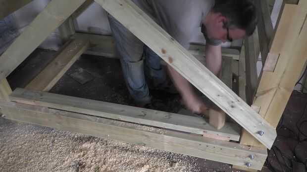 Los bordes cortos se hicieron de 50 × 150 mm recortes elaboración que había dejado de las piernas. Los bordes laterales se hicieron de 50 × 100 mm peldaño izquierda overs. La mortaja en los bordes laterales tuvo que ser incluido desde el extremo por unos 50mm en orden para el castor a línea arriba correctamente con el centro de la viga y todavía ser capaces de girar dentro de la torre de andamio.