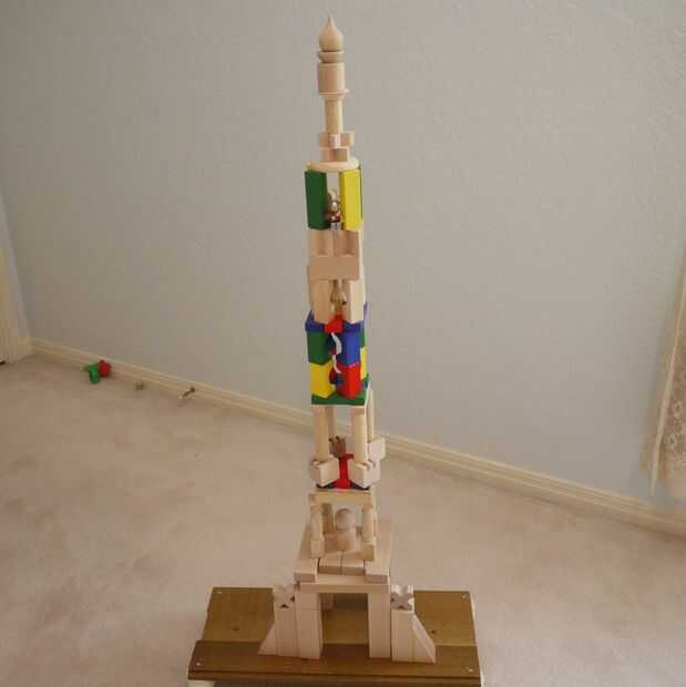 Quería que nuestro niño que algunos bloques de madera de un tamaño que le permitiría construir cómodamente una torre bien equilibrada y tenía una mitra abrió vio y una pieza de 4 x 4 sin tratamiento a la izquierda de un proyecto de babyproofing.Asegú