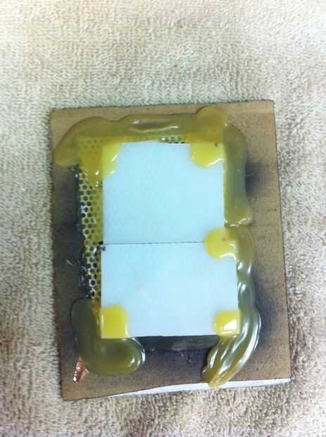 (de un filtro de aire) He pintado rojo y había pegado el lío todo con pegamento caliente. Tenía alguna película laminada así que me quedé en la