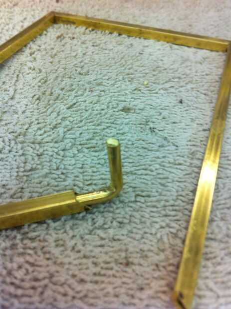 El marco de latón se hizo de tubo tienda hobby con barra redonda doblada a 90 ° para celebrar juntos, la varilla debe introducirse en el interior esquina para hacer un firme ajuste, utilice una lima de triángulo en forma. luego la soldadura de la parte posterior y buff.