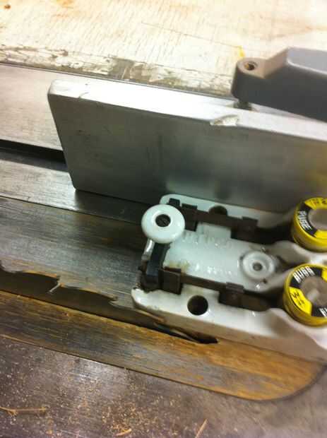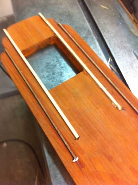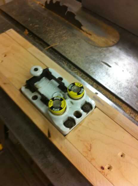 el ancho de la caja de fusible fue copiado colocando entre la hoja y la guía, esto hizo que la madera que corte coincida con la anchura perfectamente, supongo que un buen artesano apenas mediría, la tercera foto es fijar la longitud, solo pin clavado los bordes a las piezas del mediados.