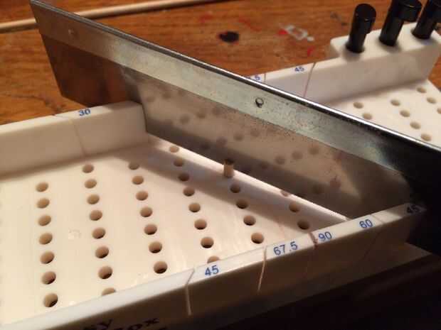 Para el empalme de pivote y pernos base utilizamos 1/8" pasador, cortar seis piezas a 0,4" de largo. También cortamos un cuarto de dos de ellos para permitir un borde plano estar súper pegado a la placa base.