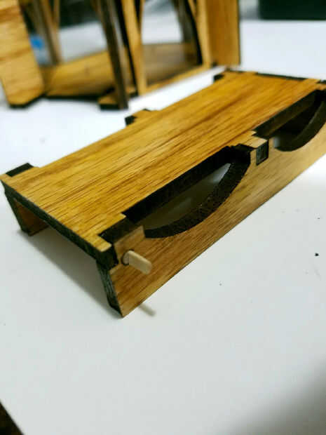 El puente levadizo en el espacio de la Asamblea de base y asegúrese de que la cara plana de los pernos es incluso con la base. Gire el puente levadizo hacia arriba y alinee el borde delantero. Virar la cola a menudo para ayudar a mantenerlos juntos.