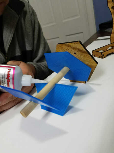 Añadir la gran placa inferior del vaso a la barra. Simplemente deslice hacia abajo en su lugar y tachuela encolarla. El ángulo debe ser alrededor de 30 grados. Ser tan exactas como deseemos, las placas funcionará con una buena cantidad de desviación.
