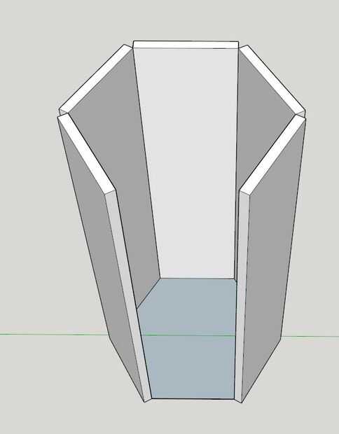 Comencé creando mi forma de la base. Hice los lados de mi hexágono 2" de ancho y las paredes son 0,2" profundos (espesor de madera contrachapada de mi) por 8" de altura. Fabricación de cada pieza un componente le permite editar una pared y cambia cada una de las otras copias para usted.