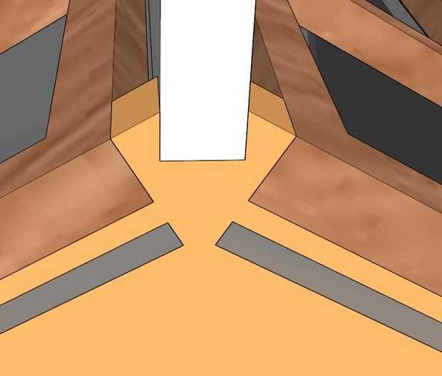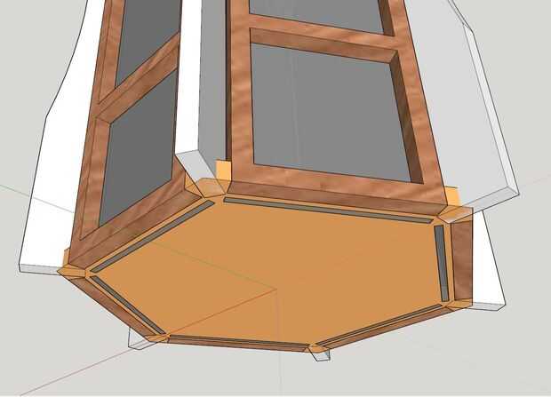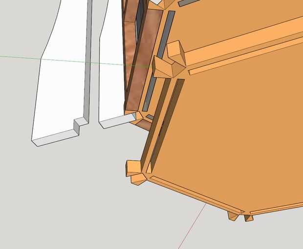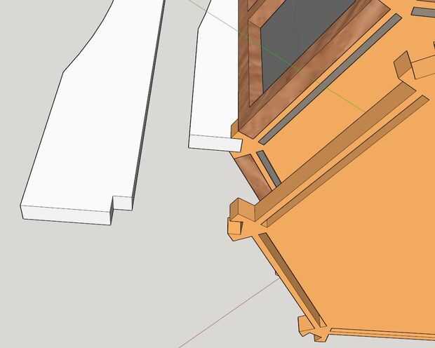 Mira las zonas de que toquen de las dos piezas. Retroceder a la mitad el contrafuerte y la mitad de la base hacia adelante. Hacer esto para todos 6 esquinas.
