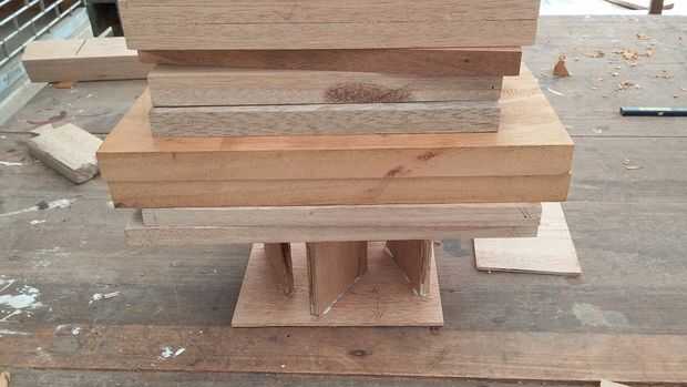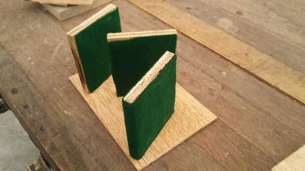 Mi trabajo es algo arbitraria. Porque la torre es un poco corta, siento que estos deflectores son atiborrados juntos. Pero funcionan bien. Después tienes configurado, marcar su ubicación, pegamento en lugar de un lado y luego coloque un objeto plano pesado grande en la parte superior. Déjelo secar. (Aviso que estoy usando pegamento de simple artesanía, no de madera pegamento. Esta madera es ligero y pequeño, así que bastaría con pegamento artesanal.)