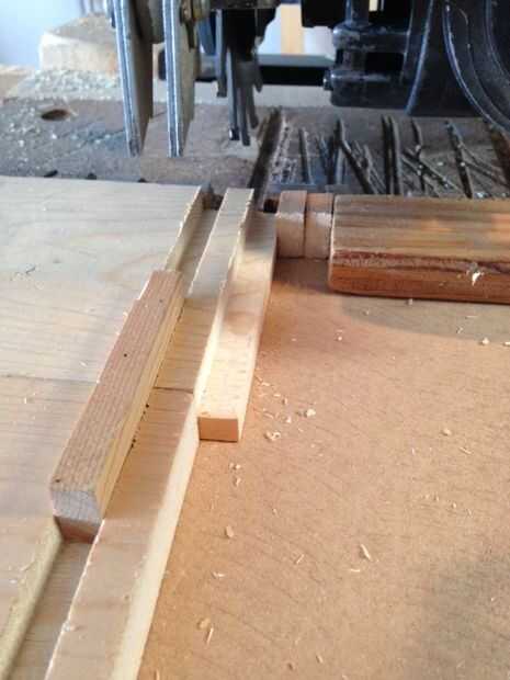 También corté dos pequeños cuadrados desde el extremo de la pieza que encaja en la ranura y bloquea los dos lados juntos. Estos se utilizarán como separadores para la colocación de los cortes de mortajas. Ver los cuadros de texto.