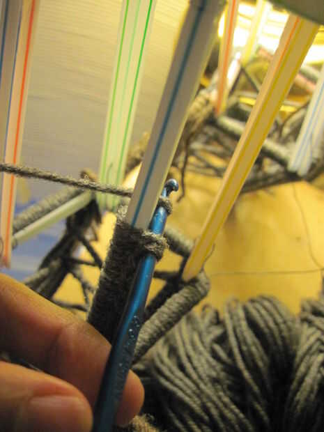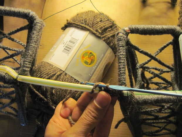 Cubrir la estructura de paja con lana, utilizando la técnica del ganchillo.