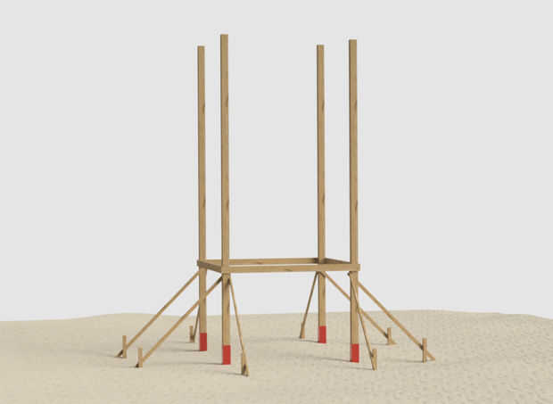 Se crea el primer nivel con 4 "x 1" maderas en aproximadamente de 1m sobre el nivel del suelo. Cada lado debe medirse independientemente como, probablemente, no serán 2m. El punto más importante aquí es conseguir las maderas horizontales.