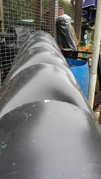 Con el comienzo de la pistola (en modo nuclear) de calor calentando la parte superior del corte, asegúrese de que usted está calentando uniformemente sobre el completo corte aprox 5-7 cm por encima del corte. después de un minuto o 2 debe ser capaz de hacer el PVC 2-3 cm (como quieras). El PVC tiene una función de memoria así que Mantén el PVC empujado hacia adentro por un tiempo hasta que quede sólido. (ADVERTENCIA! SU CALIENTE!)