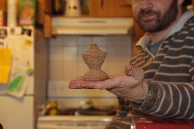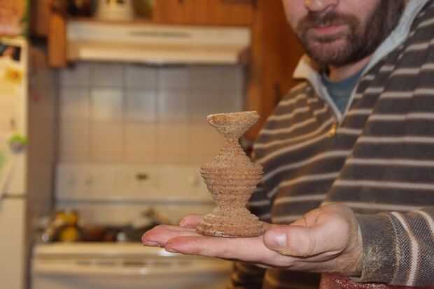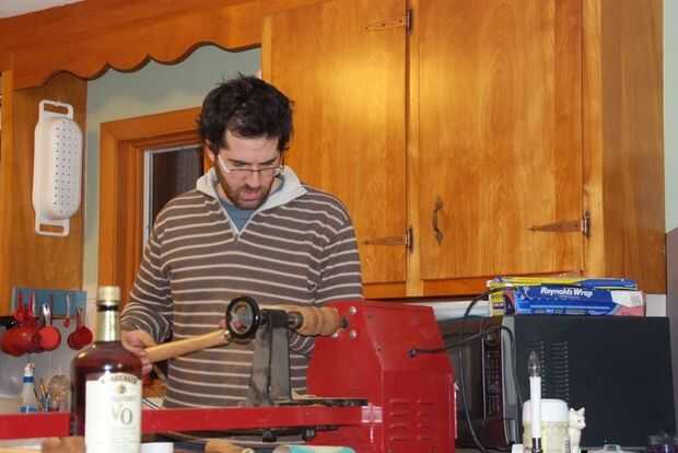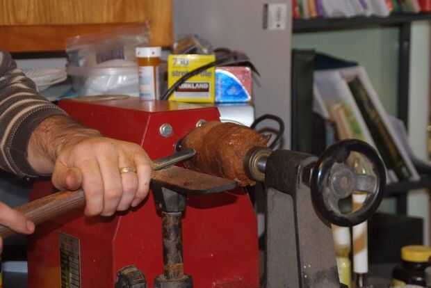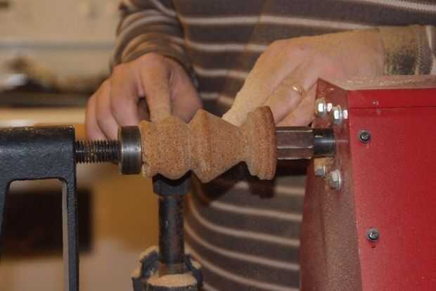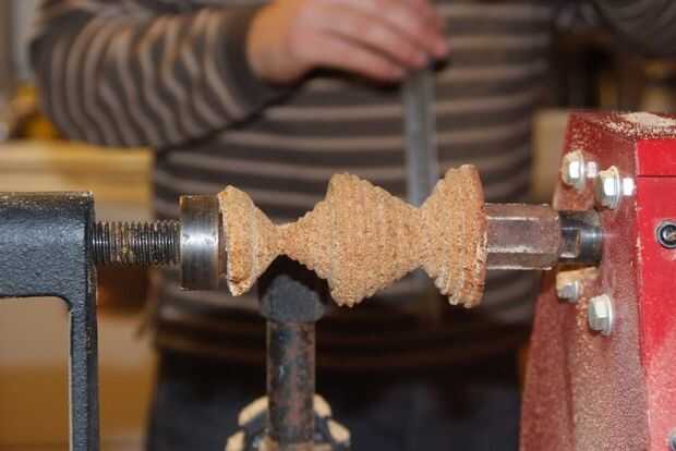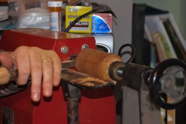Luego la puse en el torno de madera, y aquí está.