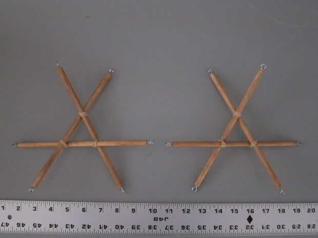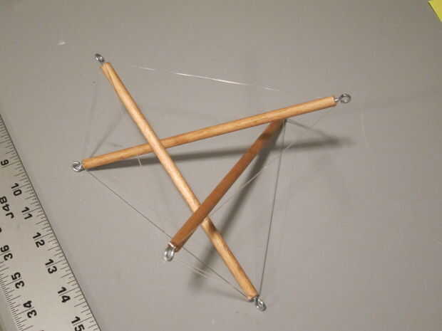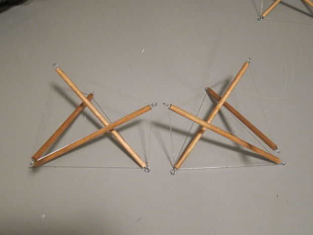 Envuelva los puntos de intersección de los tacos con bandas de goma. Debe ser formado un triángulo equilátero.