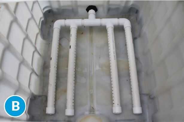 Corte un agujero en la parte superior tanque según corresponda recibir aguas pluviales bajante de sitio, desviador, bomba o pretratamiento clarificador apilados encima de la caja del filtro.