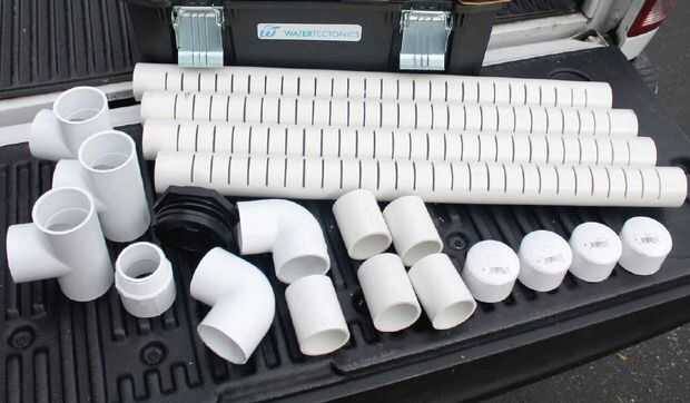 (4) 2" PVC perforado desagüe inferior (30") - pre-taladro 1/4" agujeros o ranuras cortadas con Sierra