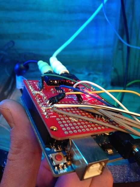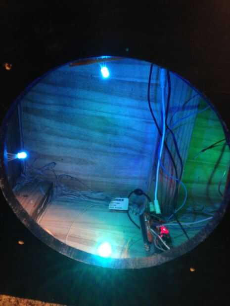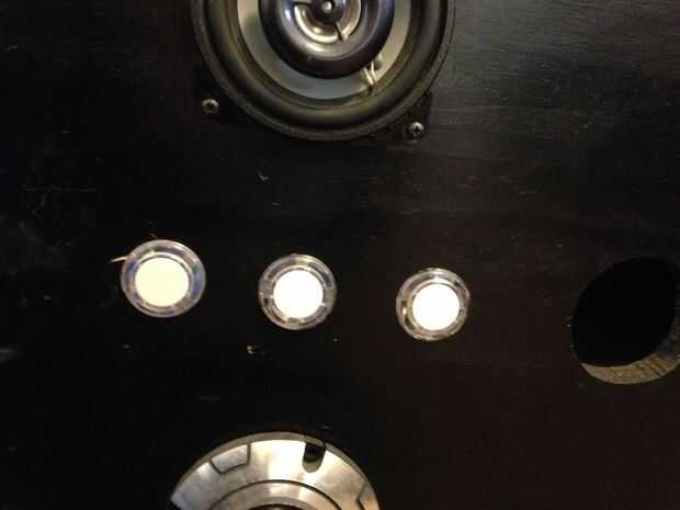 No pienso en ella al principio, pero acabé puntos para poner botones arcade en el centro con el fin de cambiar los LEDs entre color y el modo de análisis de frecuencia de la perforación.