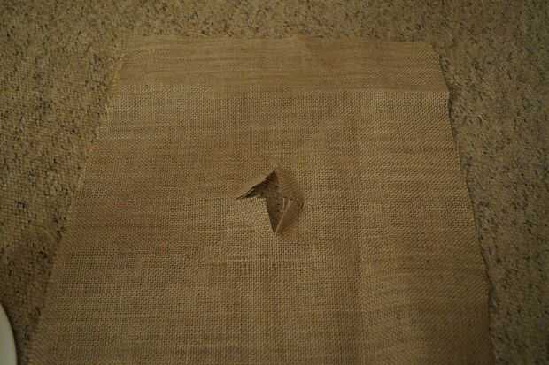 Para que sea bueno para rayar, utilicé arpillera para una cubierta. Primero se corta un cuadrado que sería fácilmente la placa, luego cortar una cruz en el centro. Esto puede entonces Deslice hacia abajo los tubos de Pringles y la cubierta de la placa para no dejar espacios. El exceso puede ser escondido debajo y pegar con cinta adhesiva por la parte inferior.