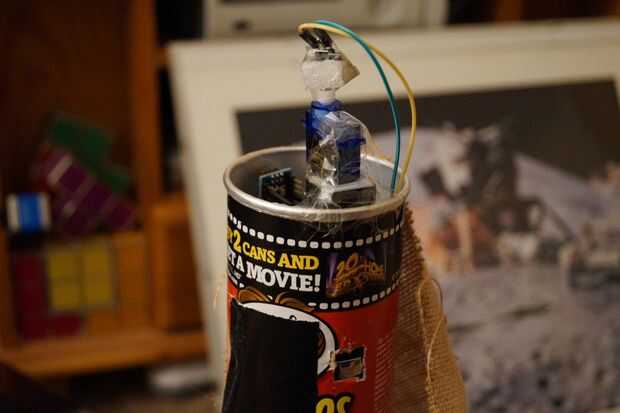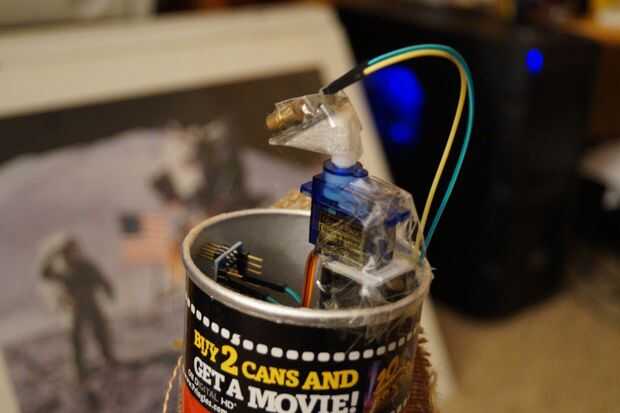 El Arduino nano es lo suficientemente ligero que sólo puede colgar dentro del tubo y la unidad de servo-laser puede montarse sobre el Banco de potencia. Coloca el láser en el centro del tubo en lugar de la orilla, que yo sabía sería ser cubriéndolo con el bote transparente y quería darle suficiente espacio para girar alrededor con los cables que salen de la parte posterior.