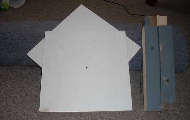 2 piezas de madera de 1/4" a 1/2" de grosor cortan en 1 pie por 1 pie cuadrados (tapa y base de la torre)