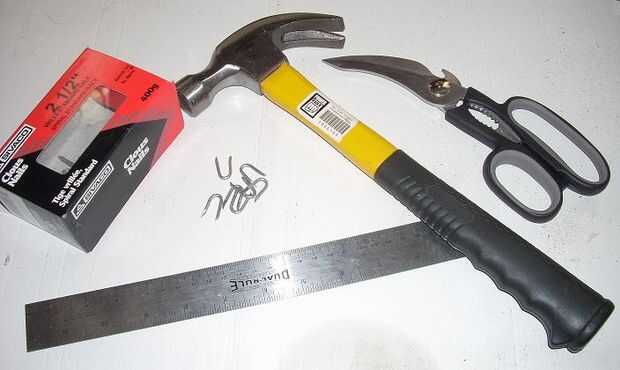 Algo para virar la alfombra (yo usé grapas de valla, pero muebles tachuelas funcionaría también)