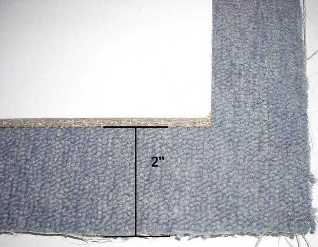 Medida y cortar 2 cuadrados de alfombra para cubrir la base y la cima de la torre. Cortar estos 2" más grandes a ambos lados de los cuadrados.