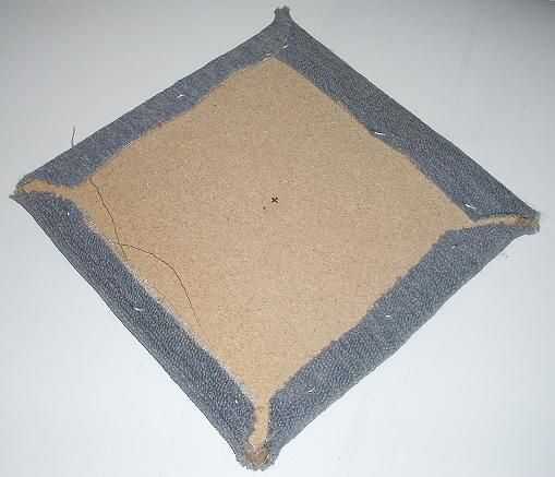 Cortar las esquinas de los cuadrados de la alfombra por lo que hay no hay superposición en la parte inferior de los tableros. Coloque la alfombra a la pieza de la parte inferior de la madera y el otro a la pieza superior.