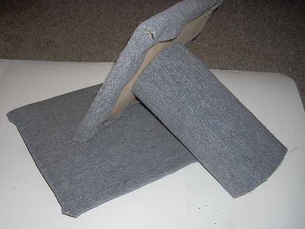 Ahora si tiene la pieza inferior cubierta de alfombra y la parte superior unido al poste, ambos cubiertos de alfombra.