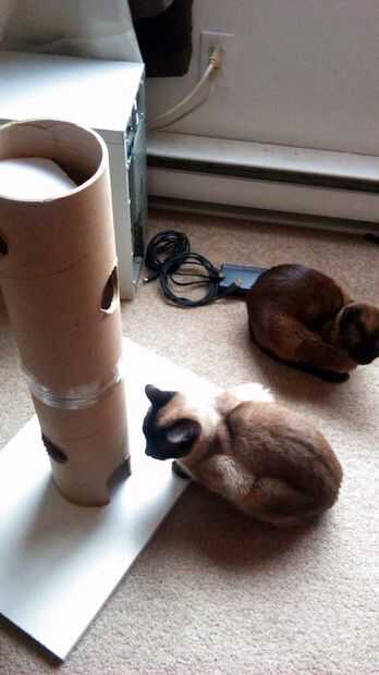 Ya no es así. Ahora la comida debe ser ganado, tienes que trabajar para él. ¿El resultado? El gato come cuando tiene hambre, cuando está dispuesto a gastar energía y haciendo un esfuerzo físico. Comer sus emociones, boredomness... forma ahora demasiado costoso en energía. Hay dos gatos aquí, uno de apenas 2 Kg (4,5 lb), el cual responde al nombre de la rosa-Mimi-Mopette y el otro es un turbo de 3Kg-cohete Kanievel mal llamado Natha forman-Chatte conocedores o similar temor ni peligro.